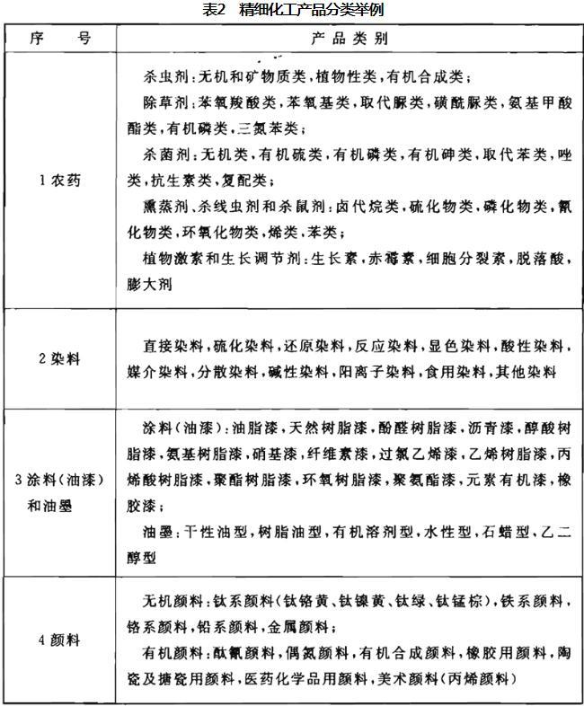 精细化工产品分类举例见表2。