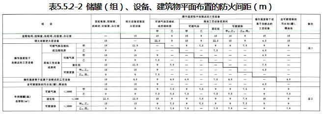 注:1 丙类生产设施之间的防火间距不应小于20m。丙类生产设施与相邻企业的防火间距,不应小于甲、乙类生产设施防火间距的75%。