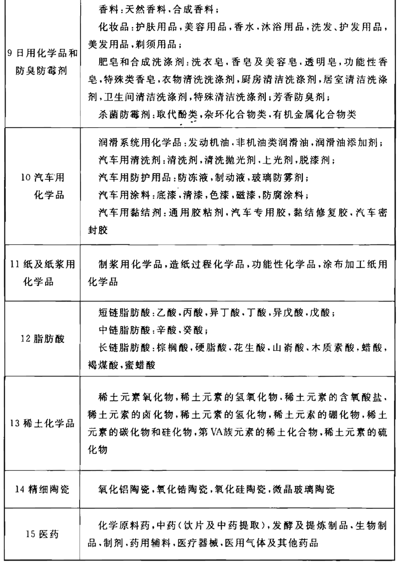 表1是在上海市工程建设规范《精细化工企业设计防火规范》DGJ 08的基础上,参照日本1990年精细化工产品分类,并结合我国精细化工产品品种的发展制定的。