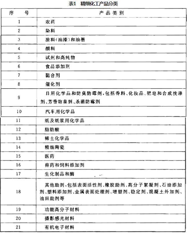 精细化工产品可按表1分类。