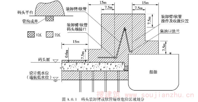 A.0.1 码头装卸臂或软管爆炸危险区域(图 A.0.1)划分应符合下列规定。