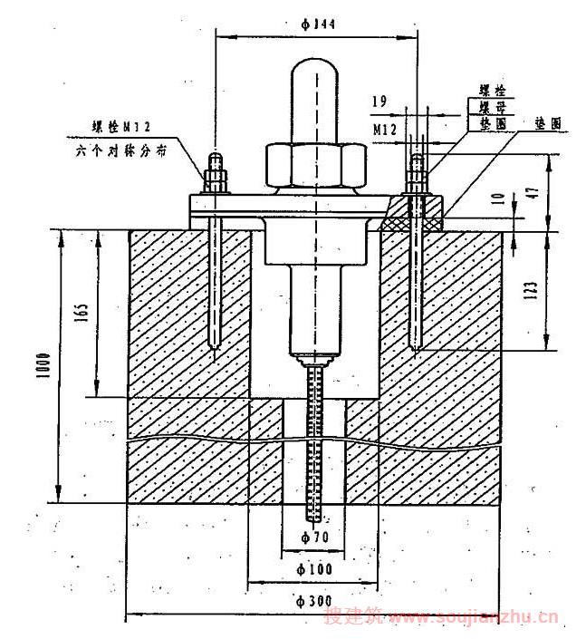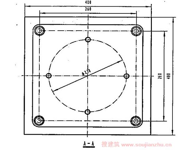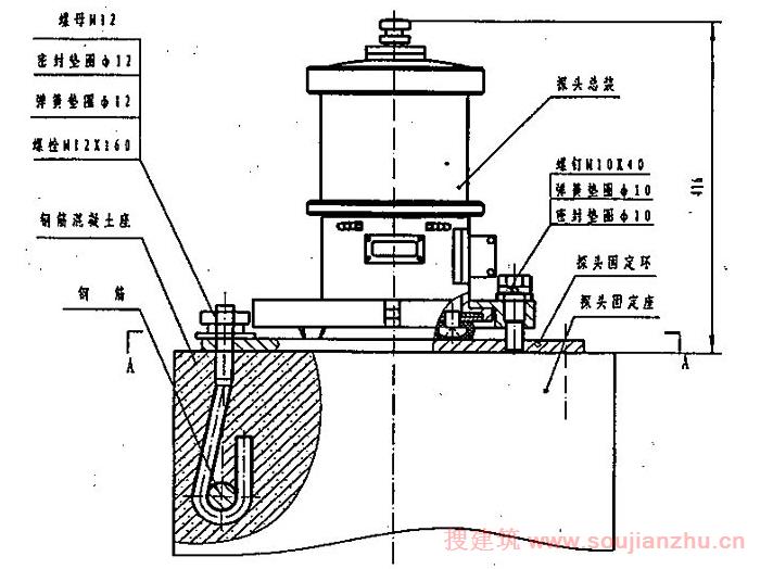 2 构筑安装探头的钢筋混凝土基座,应预埋固定探头的地脚螺栓,其基本结构尺寸见图7.1.4,探头基座的混凝土强度应满足安全要求;