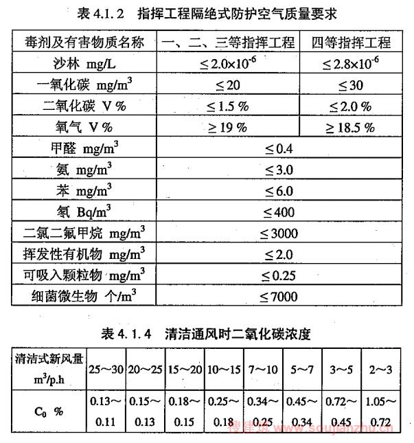 8.0.1.现行《人民防空工程战术技术要求》新增加了对指挥工程的空气质量要求,其它工程隔绝防护时对二氧化碳、氧气和一氧化碳浓度的要求也做了修改,需要对其进行监测。监测对象按照《人民防空工程防化战术技术要求》确定。