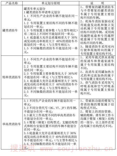 ① 与已获得证书消防车产品名称不同的(除单元划分中规定的可放入同一单元的车辆);