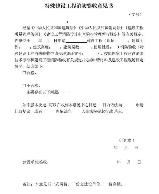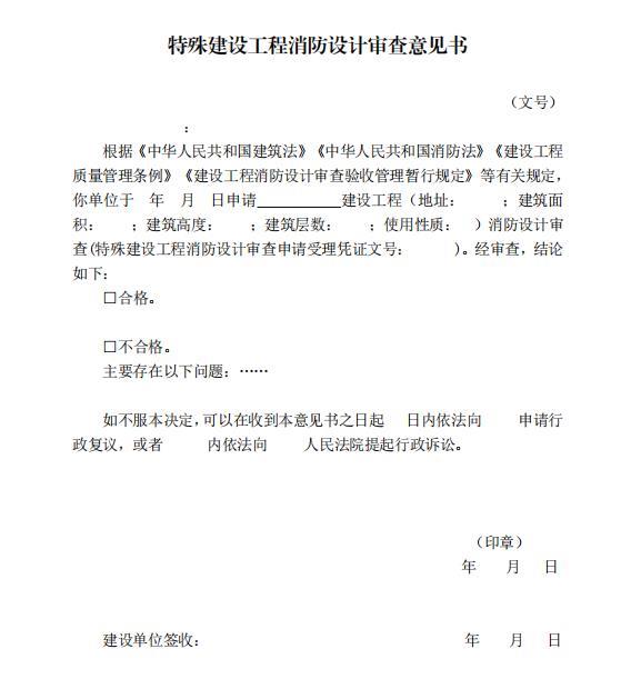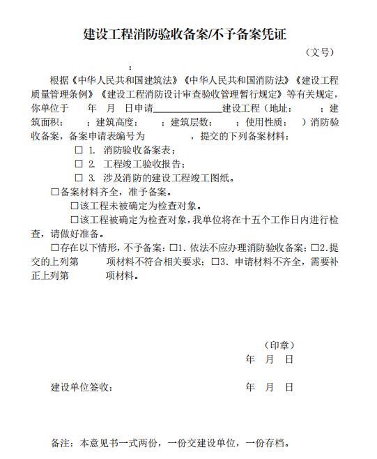 建设工程消防设计审查、消防验收、备案和抽查文书式样