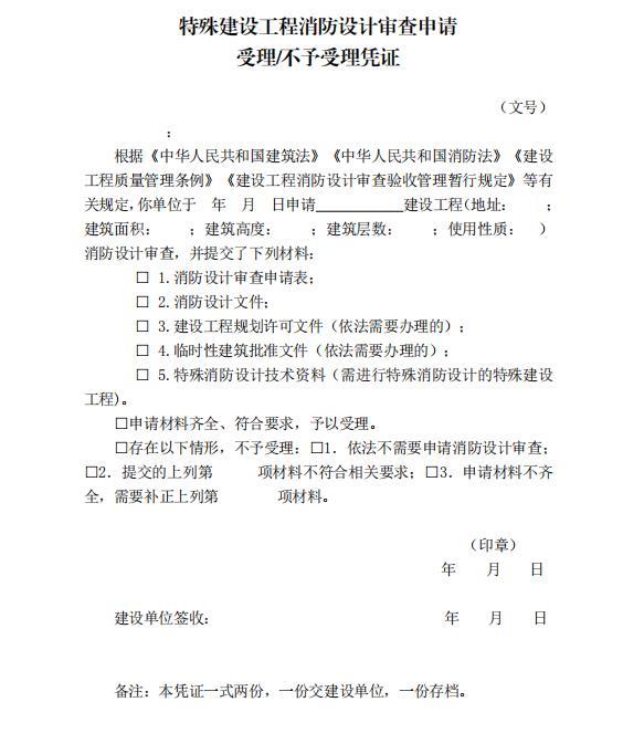 2.《特殊建设工程消防设计审查申请受理/不予受理凭证》