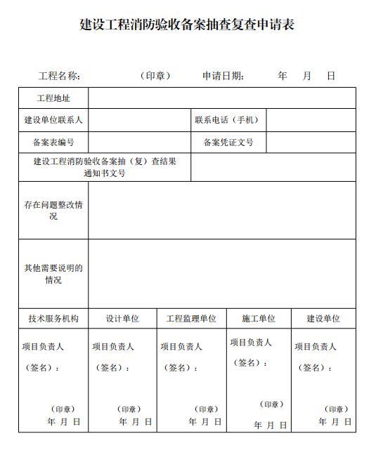 14.《建设工程消防验收备案抽查复查申请表》中“其他需要说明的情况”一栏所填内容可包括:(1)消防设计文件如有变更的,应注明变更情况;(2)应注明整改后消防设施性能、系统功能联调联试等检测合格情况;(3)其他相关情况。