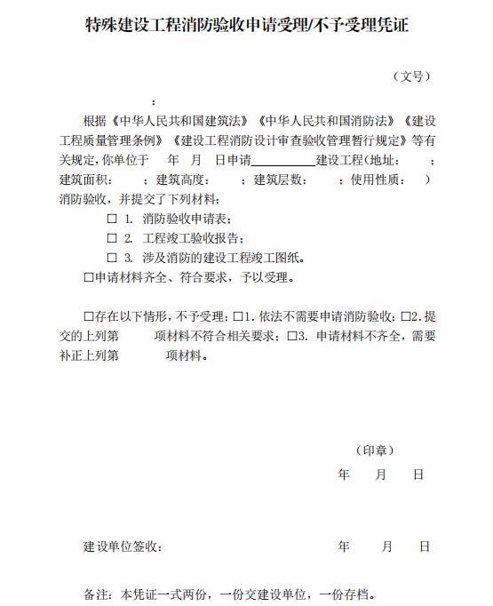 5.《特殊建设工程消防验收申请受理/不予受理凭证》