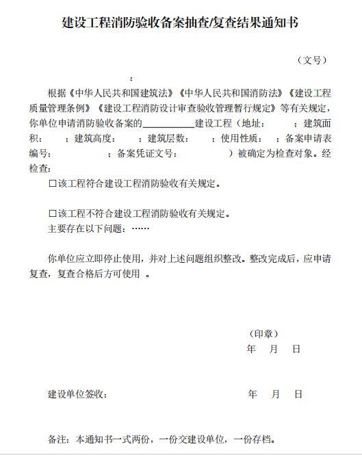 9.《建设工程消防验收备案抽查/复查结果通知书》