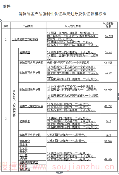 认证单元划分见附件《消防装备产品强制性认证单元划分及认证依据标准》。