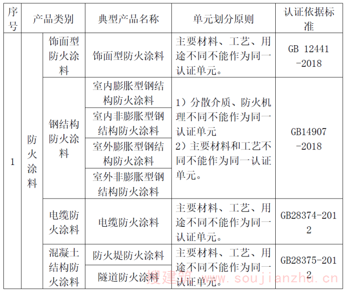 火灾探测器、城市消防远程监控产品涂料、混凝土结构防火涂料)、防火封堵材料(防火封堵材料、防火膨胀密封件)。