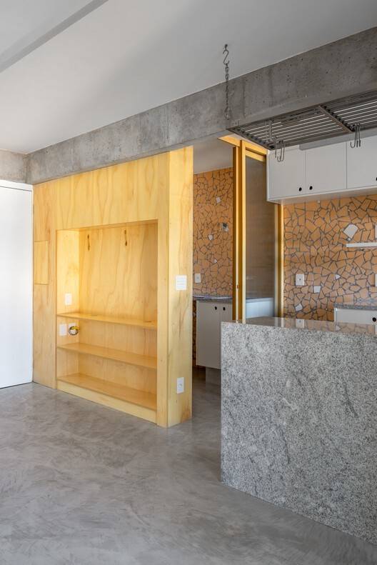 Text description provided by the architects. Located in Brasília, Brazil, this 47m² apartment underwent a radical renovation that demolished almost all internal walls and integrated the spaces, focusing on natural lighting, ventilation, and spatial amplitude. Aesthetic and sustainable strategies were applied to create a space that is both contemporary and welcoming.