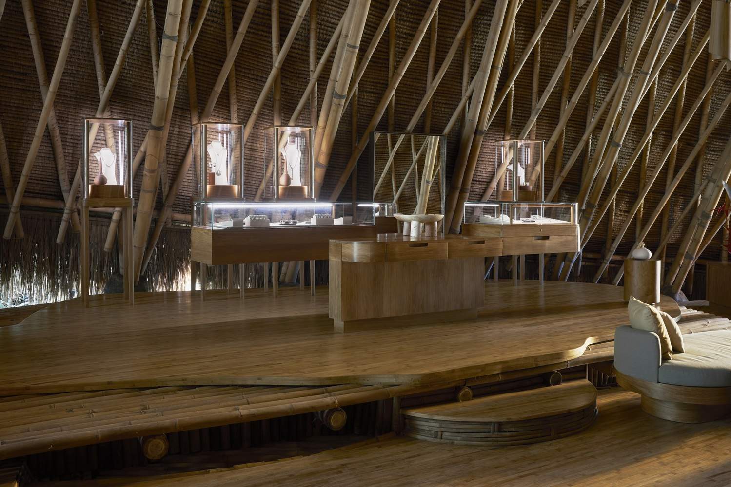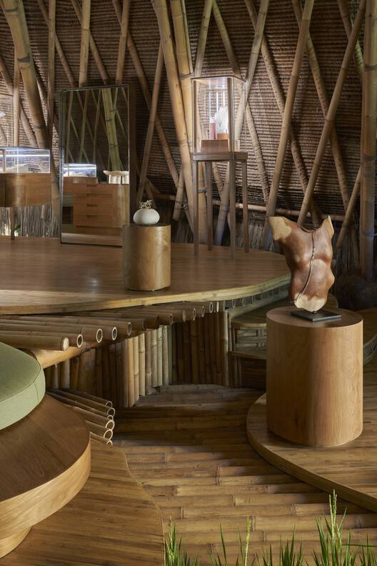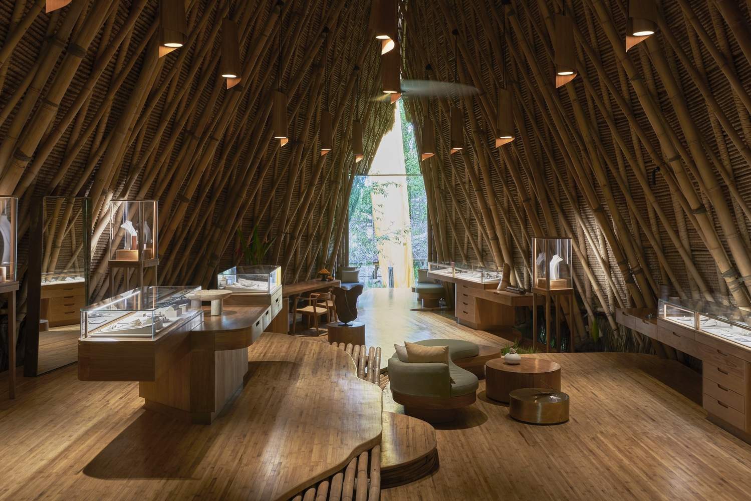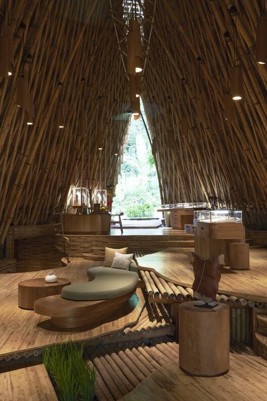 Text description provided by the architects. Designed by Blanco Studio & crafted by Kalpa Taru, interior design at John Hardy's workshop in Mambal, Bali, is a powerful blend between modern design and heritage craftsmanship that elevates John Hardy's jewelry collection displayed under the bamboo structure.
