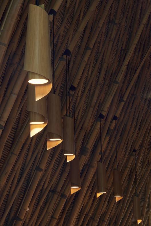 Being the original architecture inspired by the rice paddy textures, shapes and heights, Conchita Blanco felt strongly that the interior design needed to emerge from the density of the woods, as part of the building itself.
