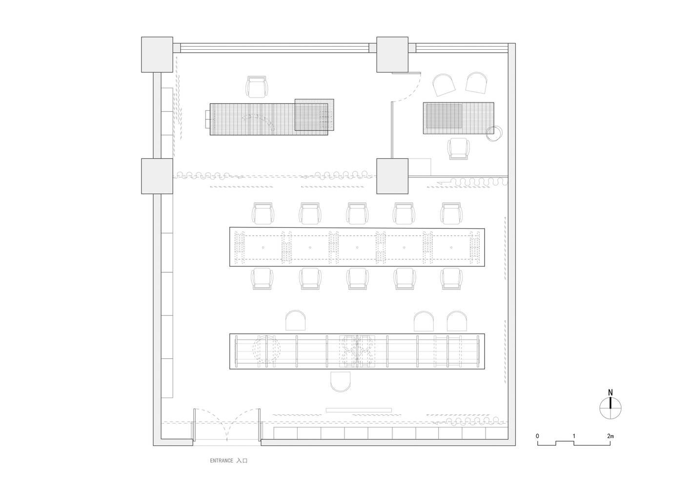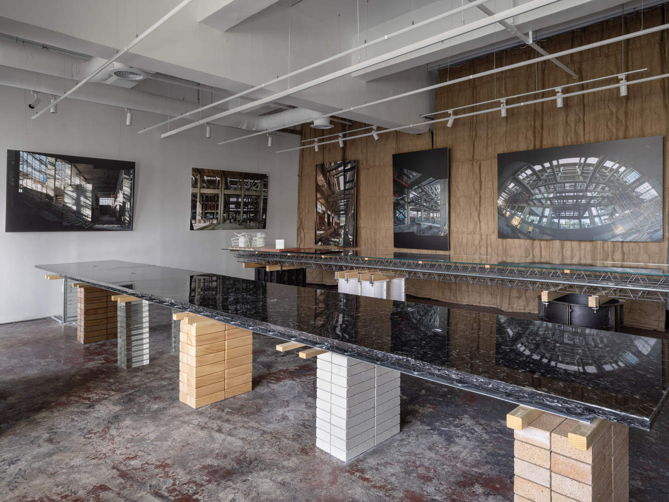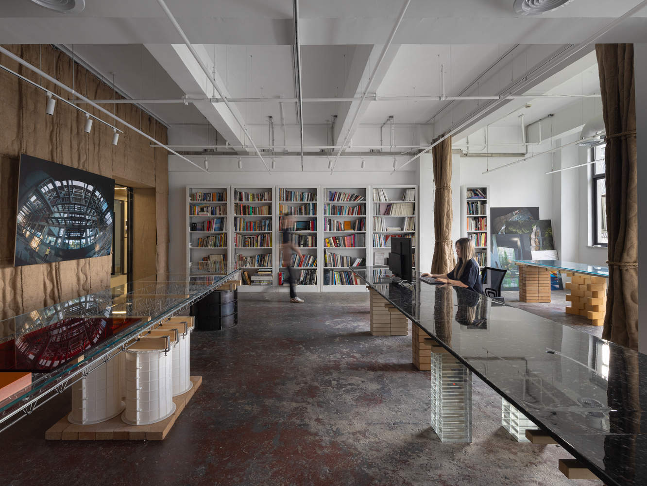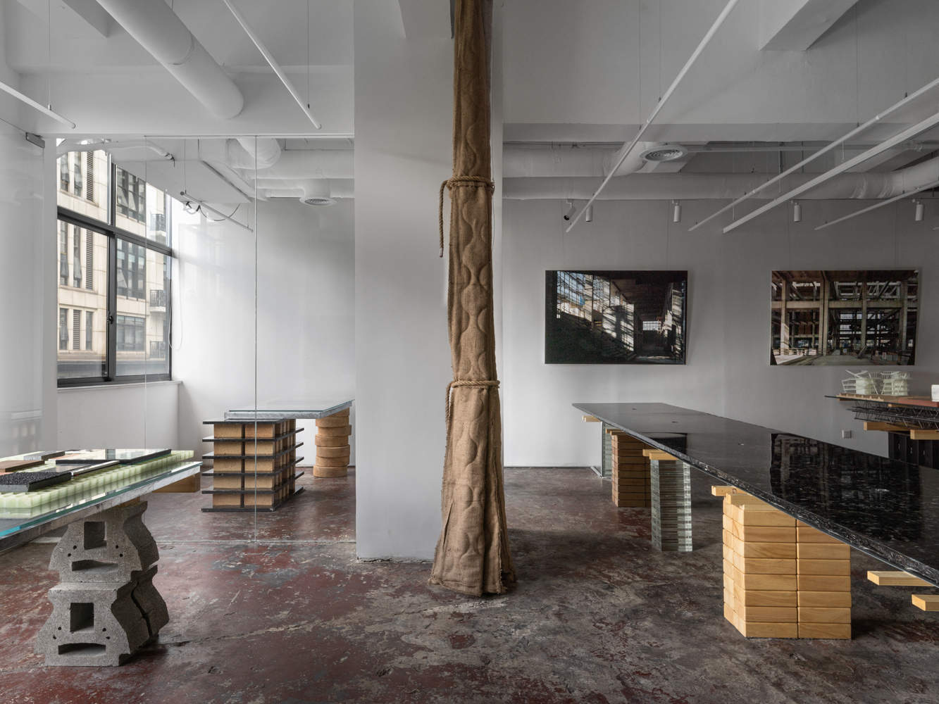 材料的新生:在这个项目中,从模具到耐火砖、GMT 托盘、地板承重板再到麻袋,原本在施工过程中有特定用途的材料被重新赋予新的生命。它们成为家具支架、台面、空间屏障等,通过物理特性与新功能需求建立联系。这种对材料的创造性再利用,不仅体现了可持续的理念,更让人们重新审视建筑材料的价值和潜力,为建筑设计带来了新的思路和可能性。