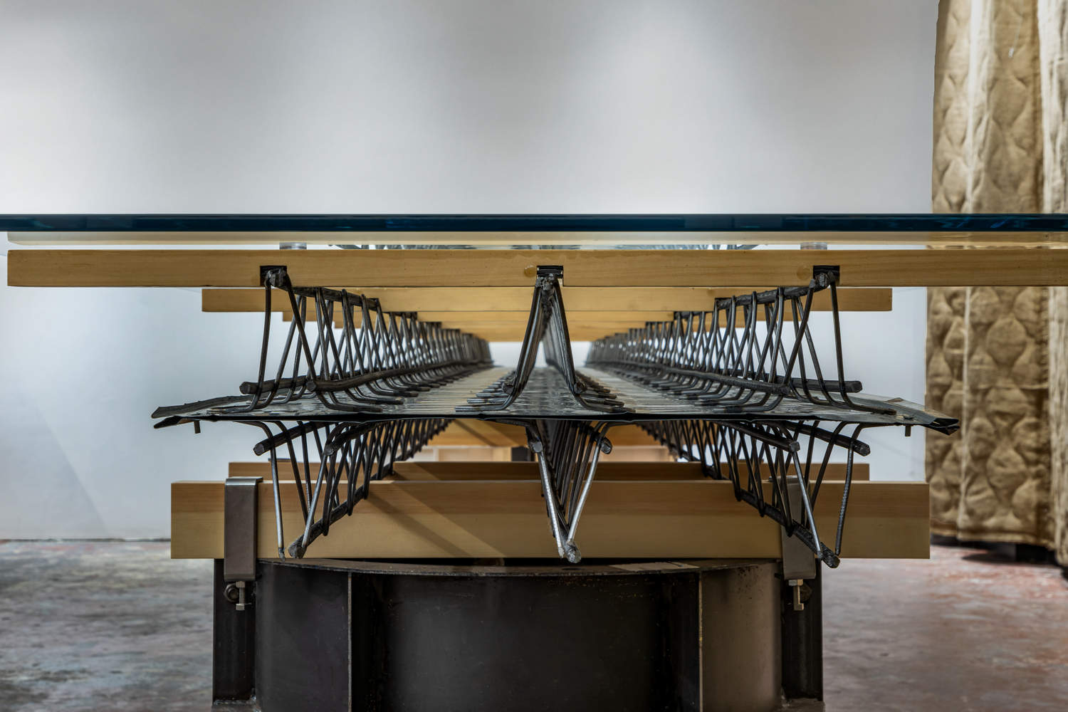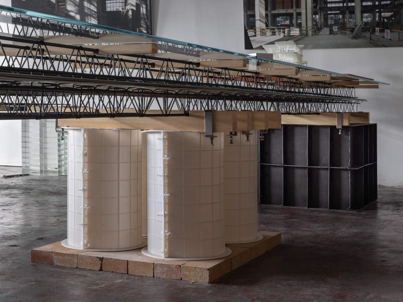 Floor Bearing Plates: Serving dual roles as formwork and reinforcement in the concrete process, these plates are mass-produced in factories through welding, boasting substantial structural capacity and used as general supports for the bench worktop and the exhibition tabletop.