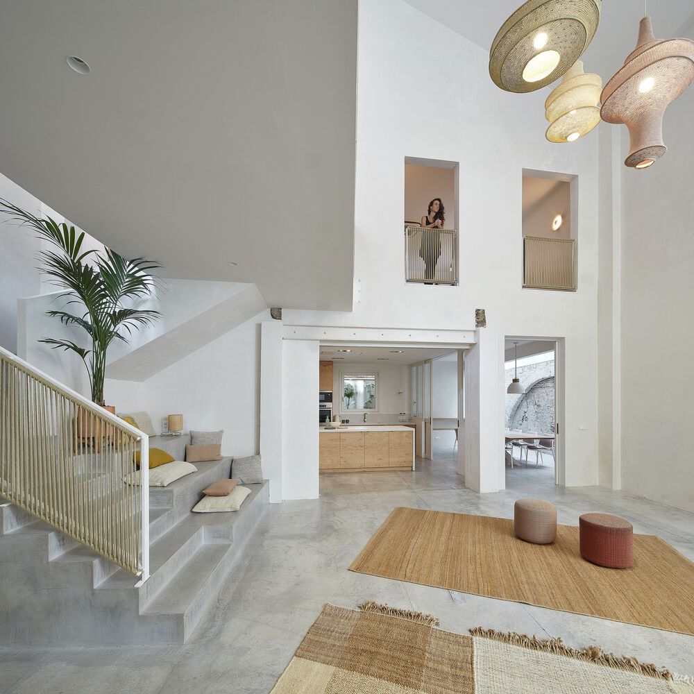 The challenge of the project was to create a space that connects with the five senses both on a personal, as well as a virtual level. The assignment was to design a space dedicated to audiovisual production that would simultaneously function as a meeting point for professionals from the yoga world. La Fábricais made up of a central double-height space, the yoga hall.On the ground floor, there is the shala; a space for on-siteyoga classes, the kitchen; a daily meeting spacefor the Xuan Lan yoga team and a recording space for cooking tutorials and ameeting room; an emblematic work space that provides a dialogue with the original architecture, emphasizing the stone arch with overhead light.