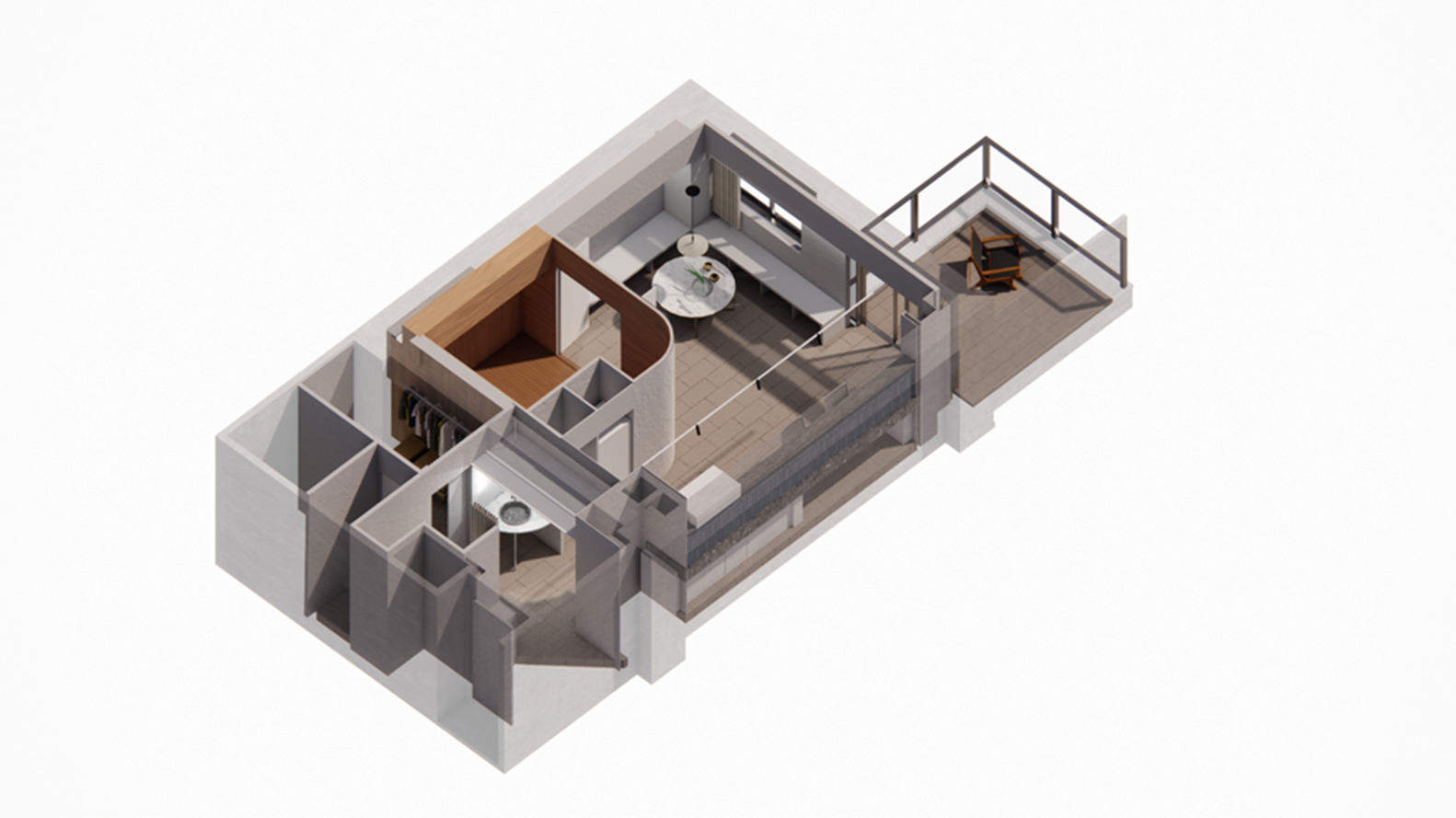 设计价值与未来展望:这个项目中建筑与室内设计相互重叠又各具价值。它不仅是新婚夫妇共同生活的开始,更是一个充满希望的起点。“边界”这一关键词贯穿始终,精心编织了生活方式、城市与生活空间的界限。随着生活方式的改变,这个名为“Bounds”的空间有望继续发展,成为承载生活记忆与未来憧憬的独特居所。