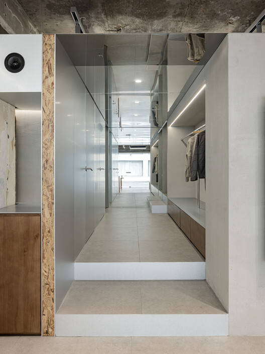 Materials like wood and metal were incorporated to ensure that as the space continues to age, it will retain and even enhance the brand's essence. The changing room and storage areas feature a more modern design, offering a contrast that highlights the versatility of the space. The staircase leads visitors to a different zone, with collaboration items from past seasons displayed near the changing rooms, providing a seamless blend of past and present.
