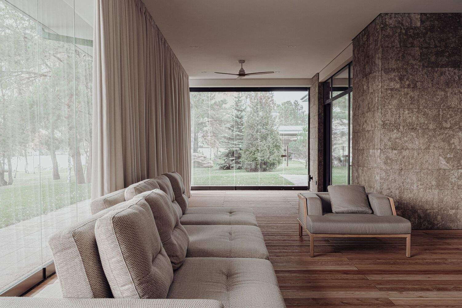 Mureli House项目可能是自工作室的另一个项目Shkrub House以来,使用了Serhii Makhno工作室中最多的作者产品设计。此外,这里90%的家具和材料都是乌克兰制造的。正如我们的客户所说,或者正如我们所解释的那样,“这是马赫诺的风格”——这是当代乌克兰风格。这个设施的名片很可能是它的大厅。高耸的墙壁、600个四足舱和5个巨大的Khmara灯,每个灯都漂浮在天花板下,朝着自己的方向发光。有纹理的墙壁和楼梯为空间增添了柔软感,使其真实、自然,并且不完美得无法辨认。弯曲的木头制成的扶手对工匠来说是一项艰巨的任务。但乌克兰人的手无所不能,这就是为什么Mureli House的扶手是按照设计师的意愿精确制作的,并且每个波浪的倾斜角度都得到了保留。