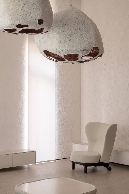 独特的设计风格:Mureli House 项目展现出独特的当代乌克兰风格。大量使用作者产品设计,且 90%的家具和材料为乌克兰制造。从高耸的大厅到各个功能区,无论是有纹理的墙壁、弯曲的木质扶手,还是特色灯具和定制家具,都体现出对细节的极致追求和对工艺的精湛把握,为居住者营造出真实、自然且充满艺术感的空间。