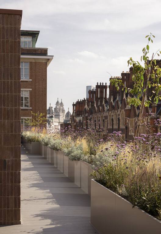 Text description provided by the architects. History dances with sustainability and modern elegance in the new Chancery House workspace for The Office Group in the heart of London's lively Midtown. The meticulously revitalized nine-story heritage building stands tall as a timeless testament to the city's enduring charm. Perched elegantly atop the labyrinthine London Silver Vaults, an underground treasure trove of the city's rich history, this architectural gem exudes an enchanting fusion of heritage and contemporary design. It's a place where the subtle whispers of time harmonize with the vibrant energy of today, creating a unique atmosphere. Step inside to discover a palette of colors and materials that reflect the city's vibrant tapestry, while the essence of the building evokes a sense of serenity, echoing the ever-evolving rhythm of modern life.