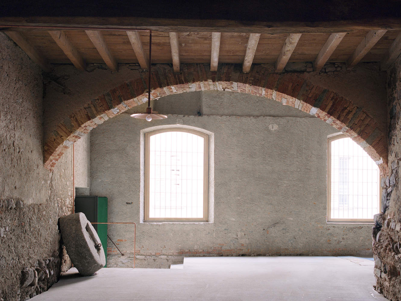 The more we examined the masonry, the more it became evident how the history of the building played a key role in the project. The space used to be open-air without any roof and the windows faced an interior courtyard-garden; the area was later enclosed with new masonry and a roof, forming a new building leaning against the interior volumes.