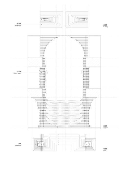 受窗帘的启发,该项目在施工过程中融入了切割技术。这些间隙被引入到原本密集的砖墙中,创造出实体和空隙之间相互作用的视觉效果,模糊了边界。建筑中心的分层钢板,以更精致的切割形式与起伏的波浪相呼应,诠释了天津作为港口城市的城市气质。