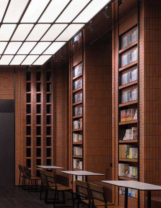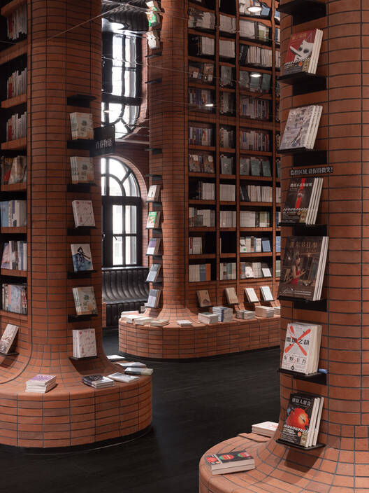 Text description provided by the architects. The project is located in the Italian-style district of Tianjin, where century-old Italian architectural clusters characterized by red bricks stand. The original site of Tianjin Zhongshuge was a modern building that detached from the surrounding classical context. The reconstruction demands an integrated consideration of architecture and interior design, fitting into the cultural atmosphere of the district. Red bricks, as an important constructive material in Italian classical architecture, have become a necessary design element for this project.