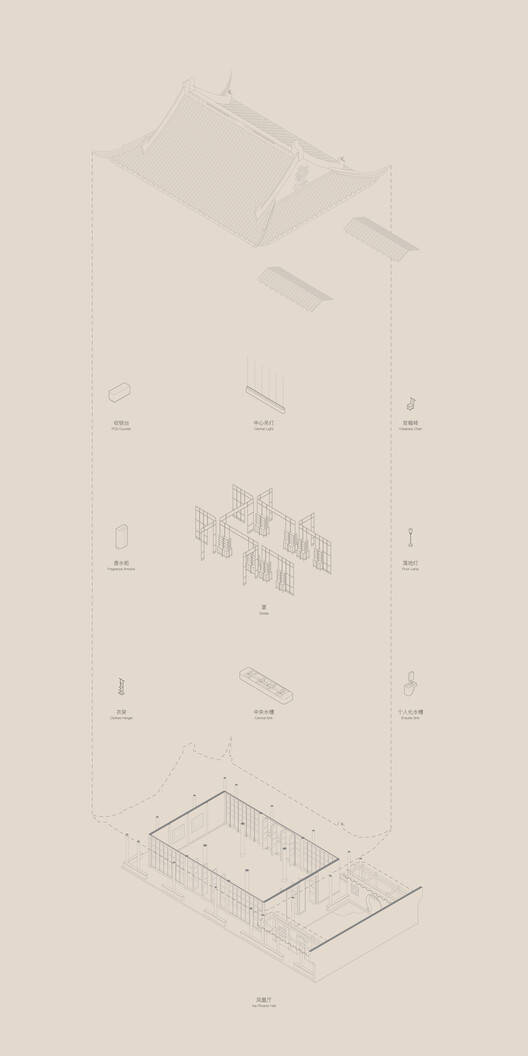 建筑师提供的文字描述Text description provided by the architects. As the first soft rays of dawn paint the cobblestone street of Cangjie in soft hues, an autumn breeze carries not only the crimson leaves from Hanshan Temple but also a mysterious guest who had silently slipped into the tranquil city of Gusu.
