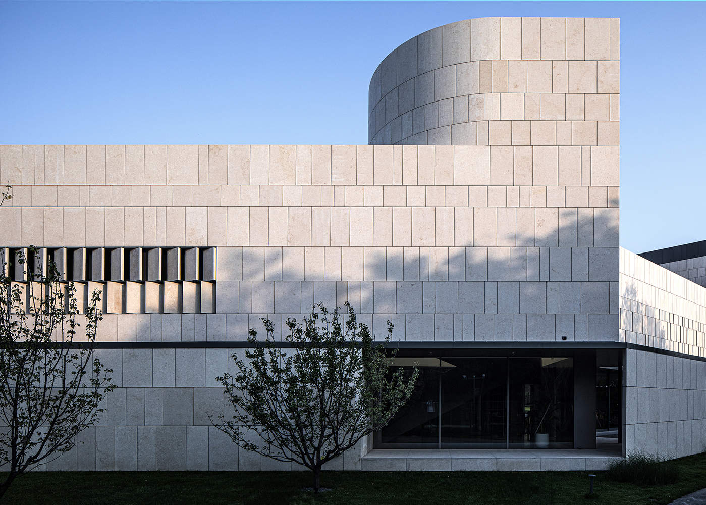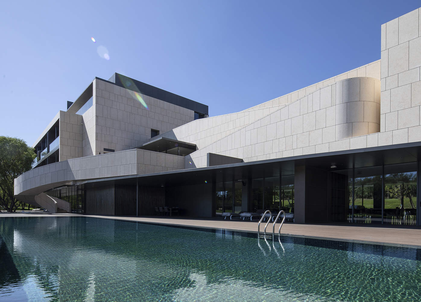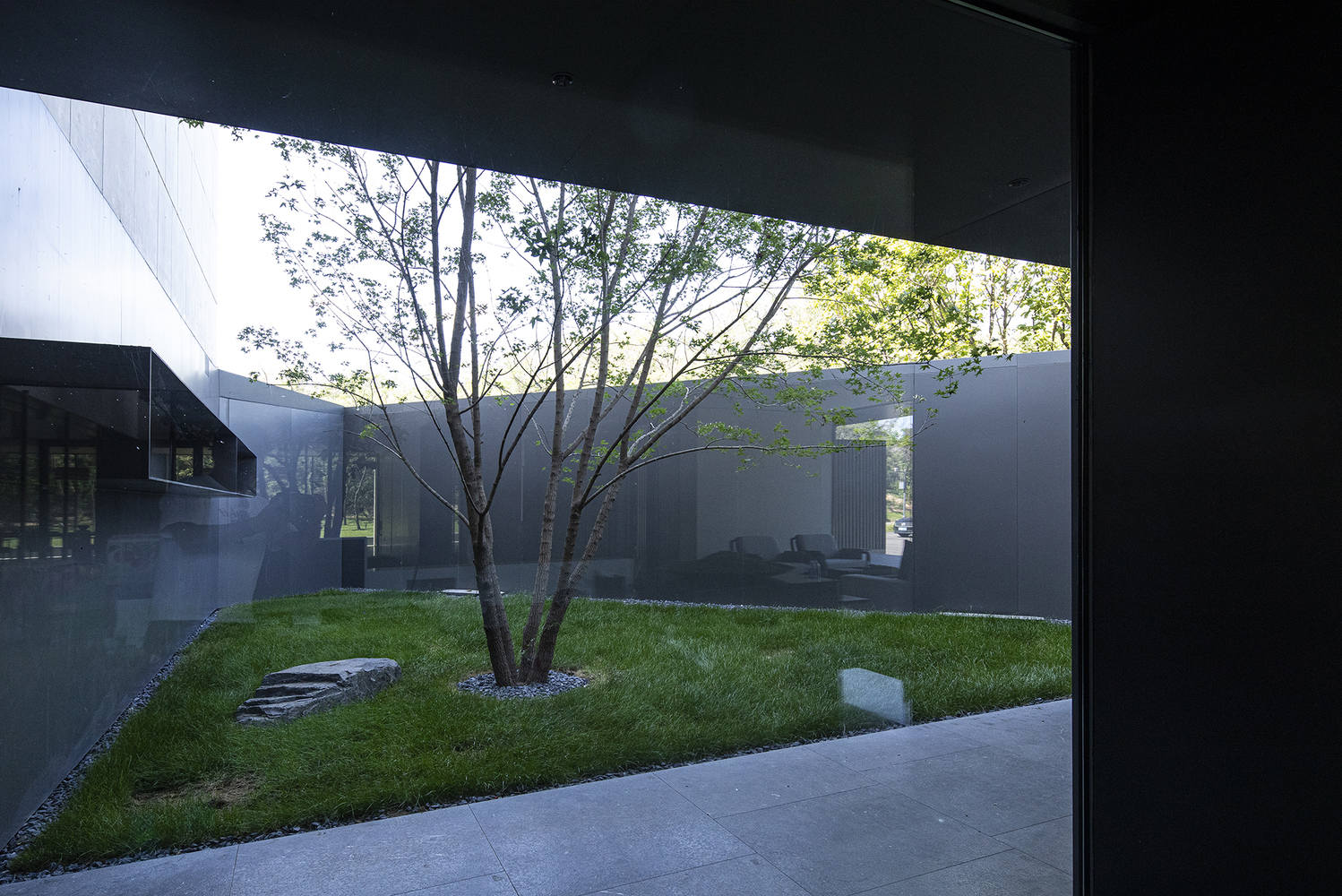 第二种策略是通过有选择地减少内部建筑面积来创建一个内部庭院,以增强与自然的接触。最后,第三种策略引入了新的庭院墙,将以前分散的建筑部分连接起来,并将外部自然包裹到内部。通过这种方式,建筑的边界被故意模糊,从而与周围环境无缝融合。建筑的上部遵循原始布局,分为两个不同的区域:一个公共区域和一个更私人的客房区域,中间有一个露天羽毛球场。屋顶增加了巨大的价值,提供了多样化的有利位置和空间体验。中间部分引人注目的室外楼梯和坡道不仅用于消防疏散,还将上层直接连接到地面,在上下移动时可以看到不同的景色,鼓励人们沉浸在大自然中。外部采用米色石材装饰,在北方寒冷的冬天传递温暖,与业主的愿景相一致。坚固的墙壁也与该地区的特色产生了共鸣。