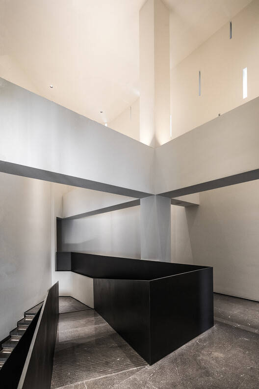 The renovation aimed to break down the isolated and enclosed facade, fostering a close relationship between interior spaces and the picturesque surrounding environment. By reorganizing the interior layout, the design introduces a refreshed vacation lifestyle that brings nature indoors as much as possible. To enhance spatial flexibility, the existing column grid was treated as an orderly framework. Within this grid, structural columns are either concealed within partition walls or deliberately exposed, creating a new balance of openness and structural coherence. To strengthen the building's connection with the surroundings, three main strategies were employed in the renovation. First, based on the existing concrete frame structure, the design team removed the first floor's outer infill walls, unified the interior ceiling height, and extended the ceiling outward to create a cantilevered canopy. The canopy establishes a horizontal line across the entire building, contrasting the solid stone walls above with the airy, transparent lower section. Above this line, a solid stone facade emphasizes the structure's volume, while the space below opens to the landscape with enhanced transparency. The transparent glazing facade beneath the protruding eaves becomes an abstracted landscape belt, which captures the surrounding environment. Viewed from under the extended overhanging eaves, the distant, scattered natural landscape takes on an ordered abstraction, forming a cohesive view of the surrounding wilderness.