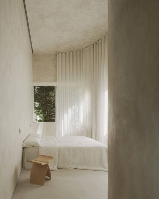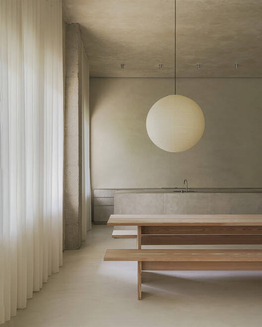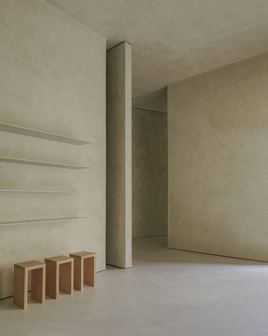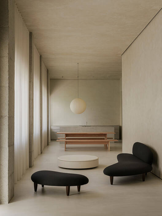 材料与质感的平衡:在室内设计中,项目采用了抛光金属元素、手工纹理以及极简主义的木石家具。这种材料组合不仅体现了现代设计的简洁性,还通过手工质感和自然材料的温暖,营造出一种精致且具有雕塑感的氛围。这种平衡展现了设计师对细节的把控能力,使空间在功能与美学之间达到了完美的统一。