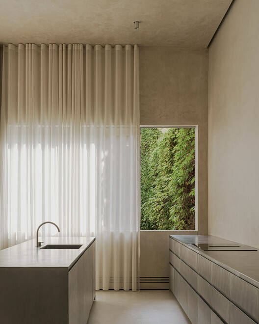 Text description provided by the architects. The project focuses on a creating contemporary home where the living quarters face a garden, which becomes the green heart of the home.