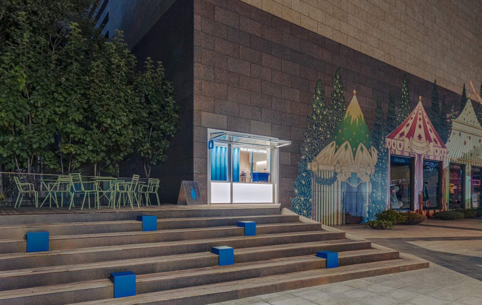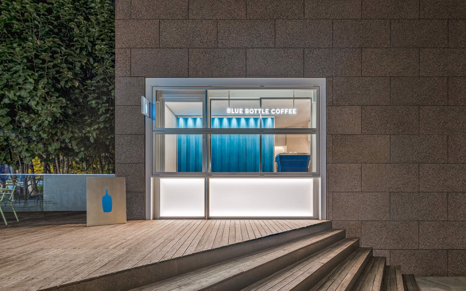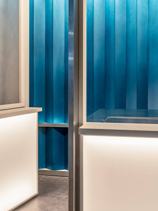 Text description provided by the architects. Located in the heart of the city center, our Samseong cafe is a sleek, walk-up spot inspired by our Hayes Valley Kiosk in San Francisco. With its eye-catching blue gradient wall and inviting design, it's the perfect stop for coffee on the go. The Blue Bottle Café in Samseong holds special significance as the site of Blue Bottle's notable pop-up store in Korea. This newly designed "on-the-go" café transcends the traditional takeout model, creating a visually compelling and welcoming experience. The space serves as a beacon of hospitality, inviting and warm even amidst the bustling streets of Seoul.