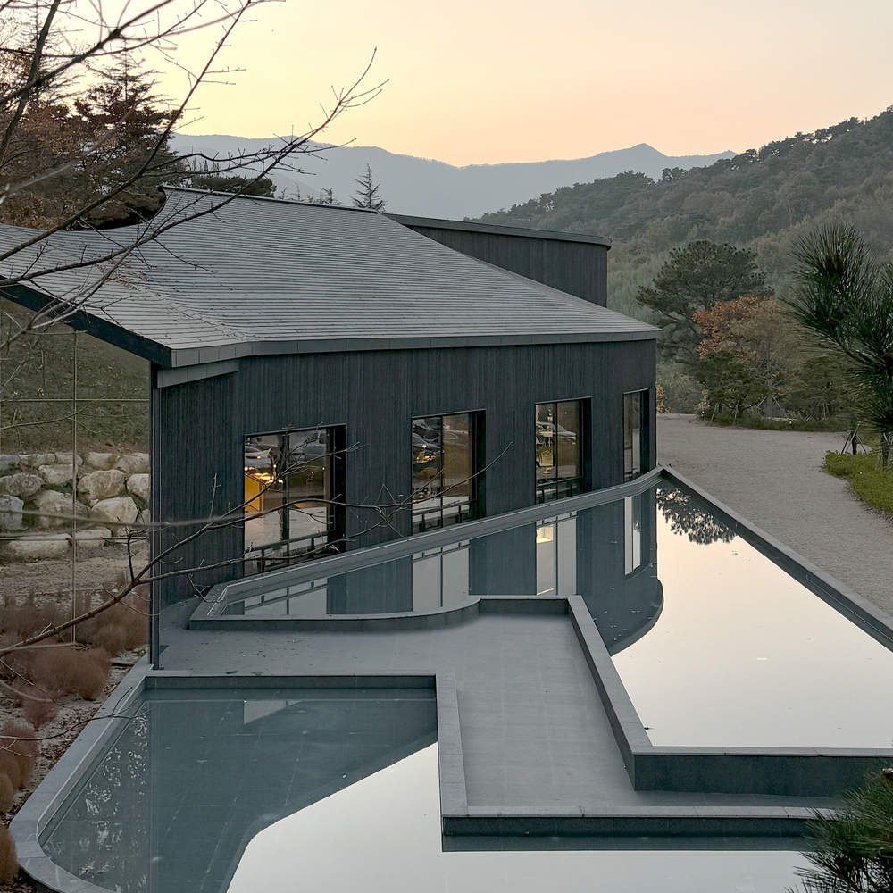 Tan-Mok-Won is the first building in Korea to be composed of charred wood and to measure over 800 square meters. Its architecture satisfies all five senses, considering the tactile, visual, and olfactory stimulations provided by charred wood, water space, and sounds of nature, as well as the taste that can be pleased with the bakery inside.