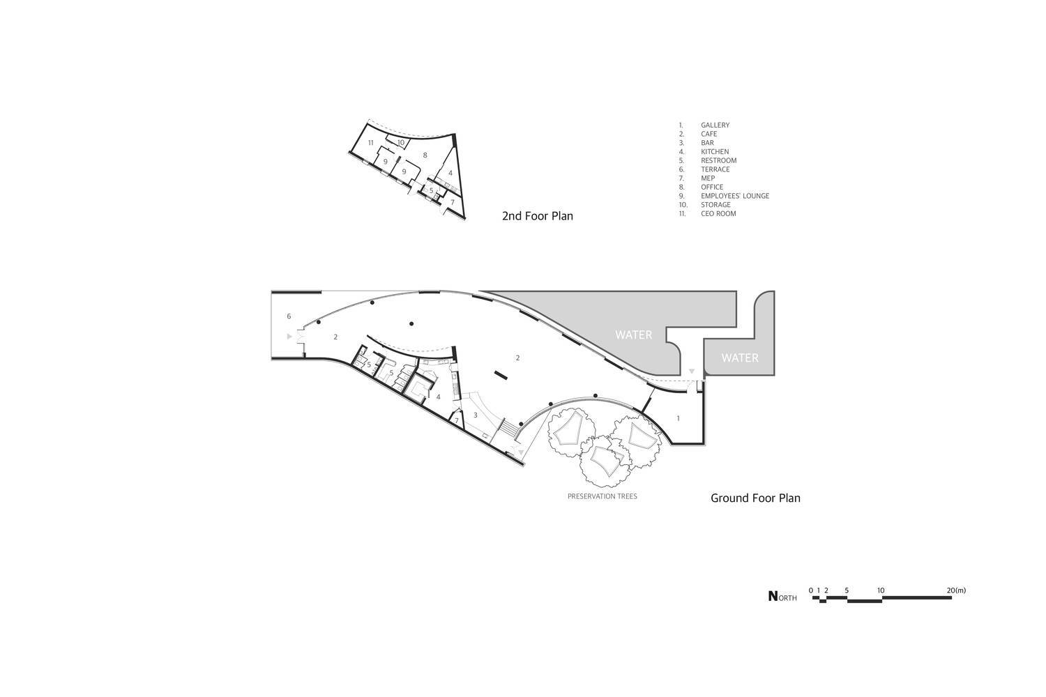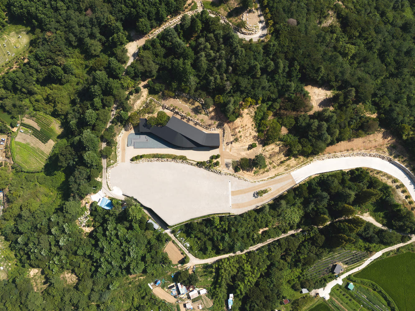 The first glance and entry sequence provides a holistic experience from which one can witness the harmony between the building and the surrounding nature. The entryway and water in front of the building control the speed at which people approach the building. Rather than simply crossing the water space, if you turn one or two times along the entrance road, your movement speed will inevitably decrease. At the same time, your field of vision will change, allowing you to view the building from various angles. Through this entrance route, visitors can fully appreciate the various sculptural beauty of the building's curves before they enter the interior space.