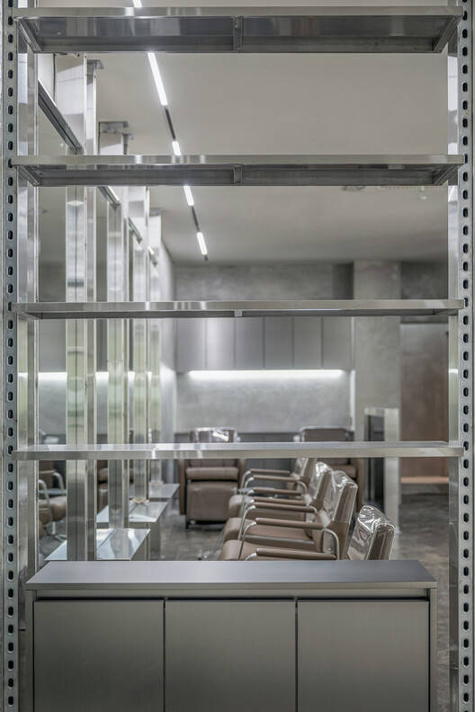 材料与视觉平衡:该项目在材料选择上展现了极高的设计智慧。金属、黑色玻璃和镜子等现代材料的运用,为整个空间赋予了时尚感和现代感。然而,设计师并没有让这些材料显得过于冷硬,而是通过灰色和象牙色的色调搭配,巧妙地平衡了空间的温度,使其既不过于冰冷也不过于温暖。这种视觉上的平衡,让空间在满足功能性的同时,也提升了顾客的舒适感。
