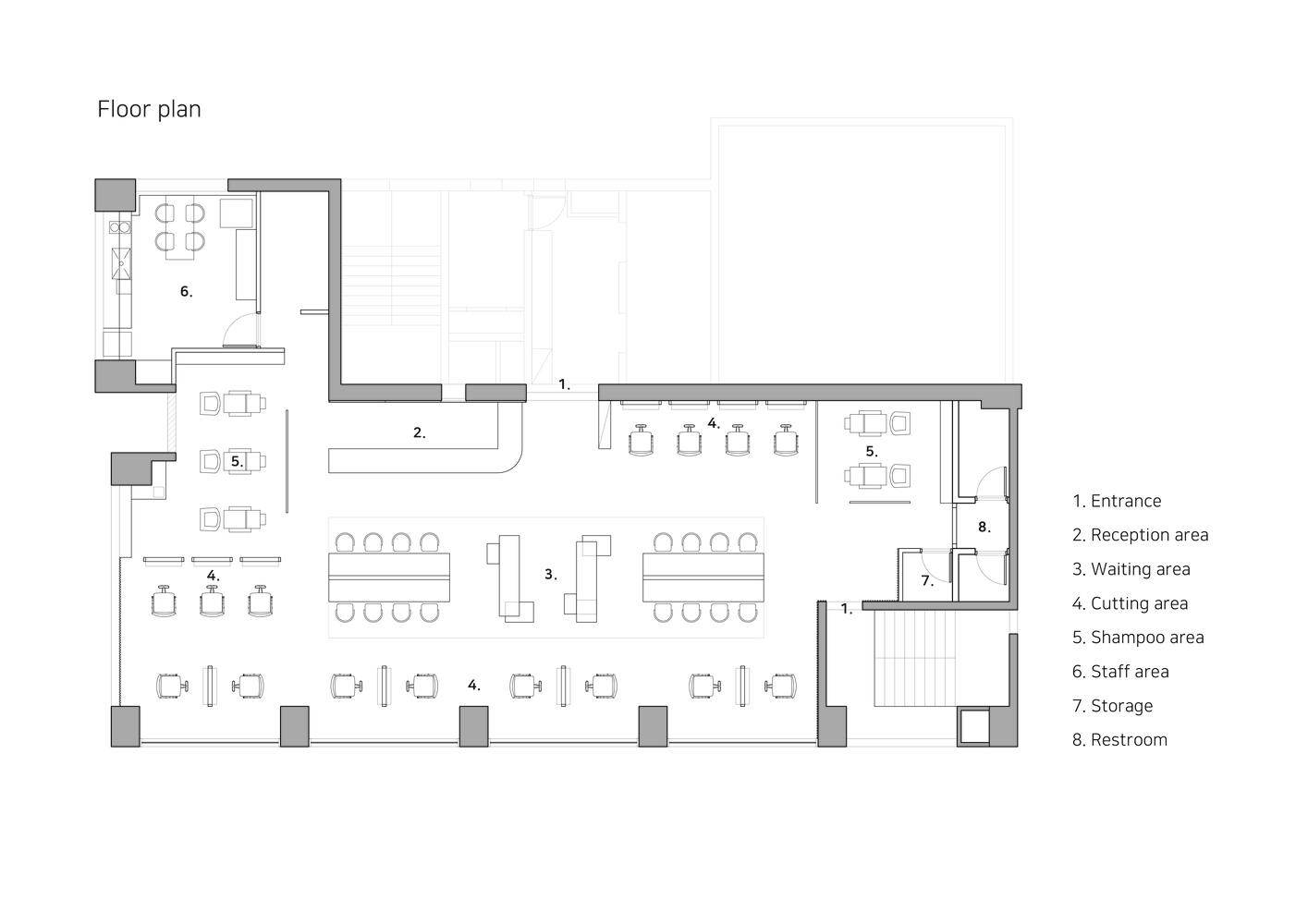 Chaoreum Hair的个人感性主题反映了美容院的一种新方法,超越了传统模式,提供个性化服务,通过提高自我满意度和自信心来刺激顾客的感官。为了摆脱传统的沙龙设计,Chaoreum Hair融入了其独特的地理位置,五金店和时尚商业区并存。为了表达这种新的形式和运动,空间的设计使用了其独特的形状、原材料和当地环境,反映了品牌的身份和空间。