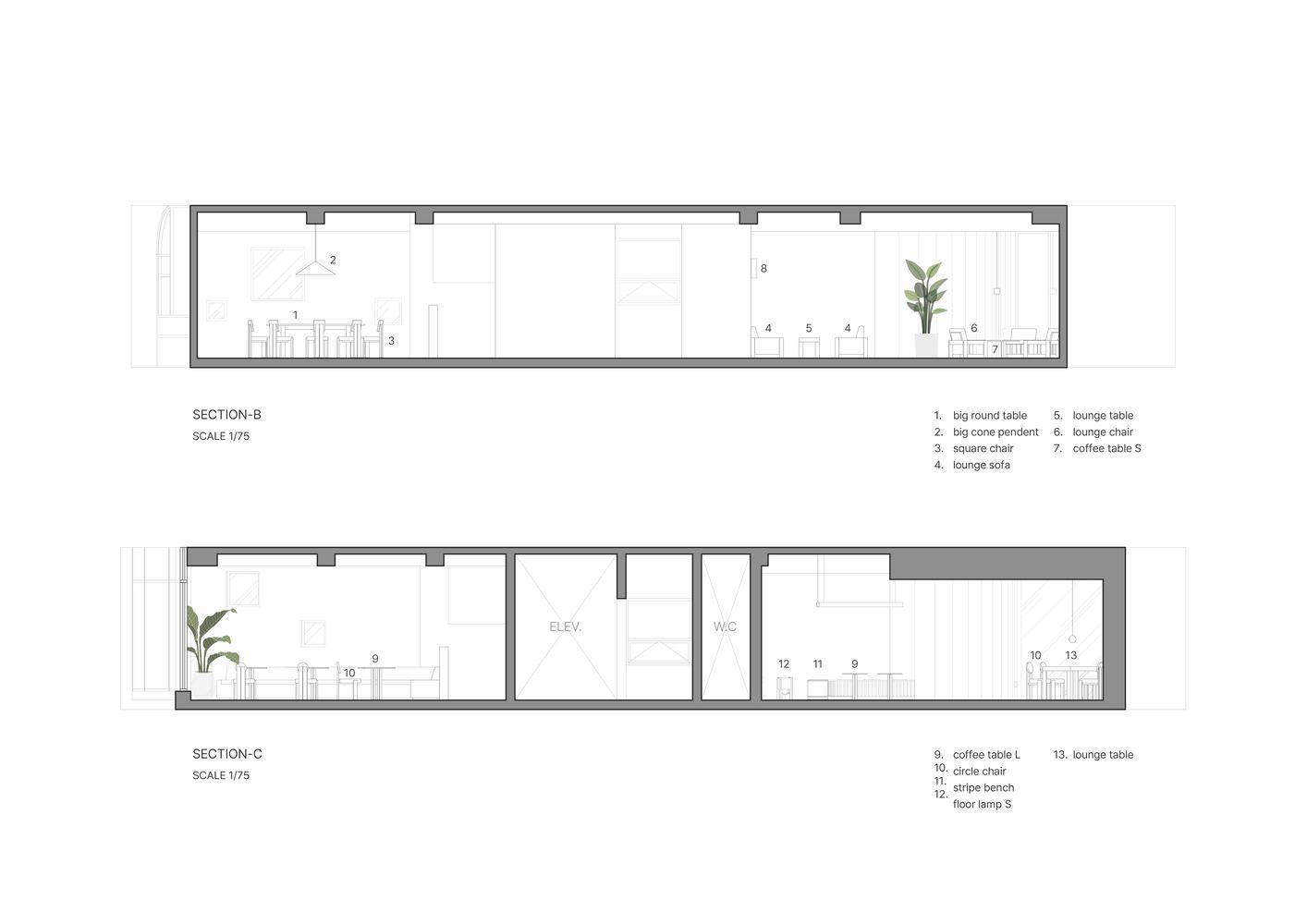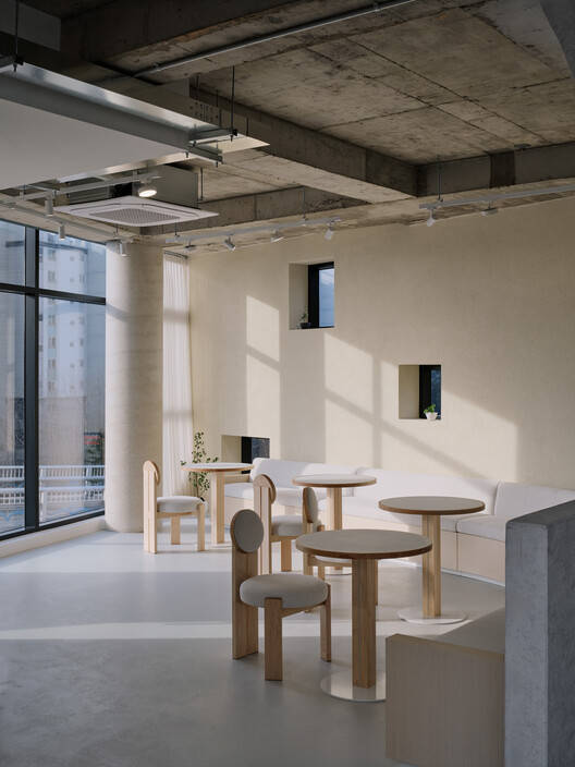 Text description provided by the architects. OZBE is a new café brand occupying four floors that offers premium fruits and serves them by directly juicing or plating these fruits on the spot. The first floor is the fruit market, the second floor contains the offices, and the third and fourth floors consist of lounge areas for customers.