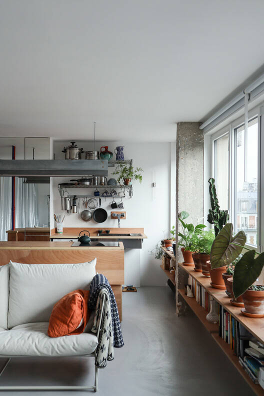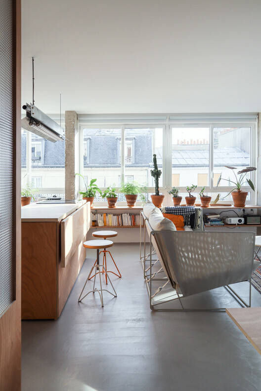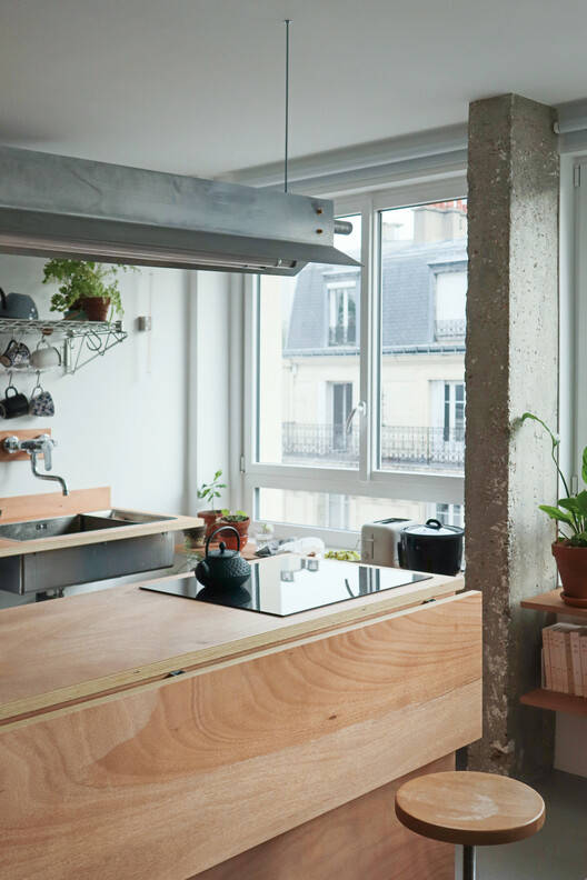Text description provided by the architects. Located in a former 2-room apartment in a building dating from the 70s, the project involved opening up the entire apartment.