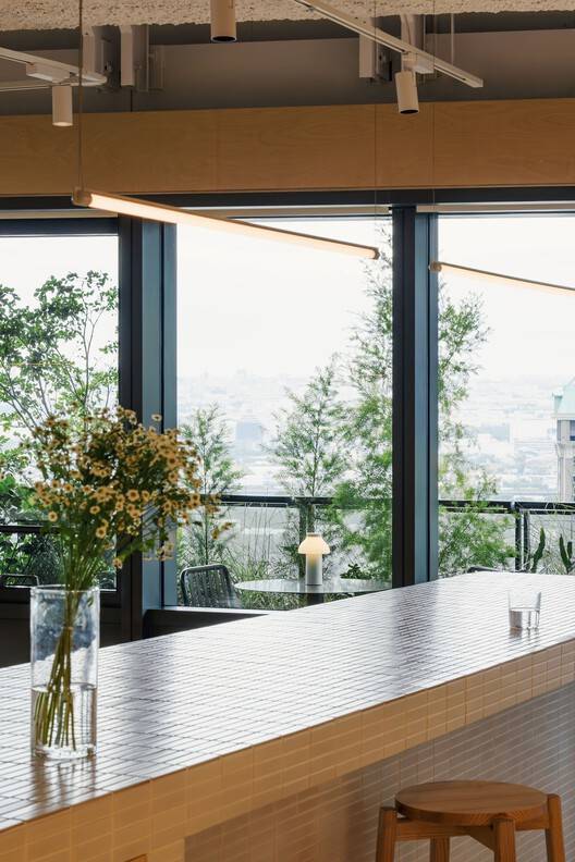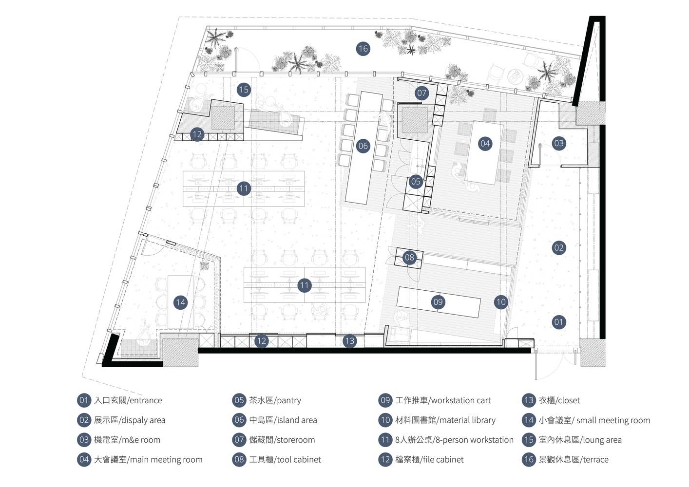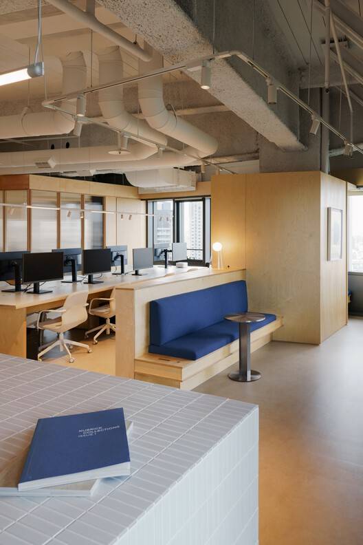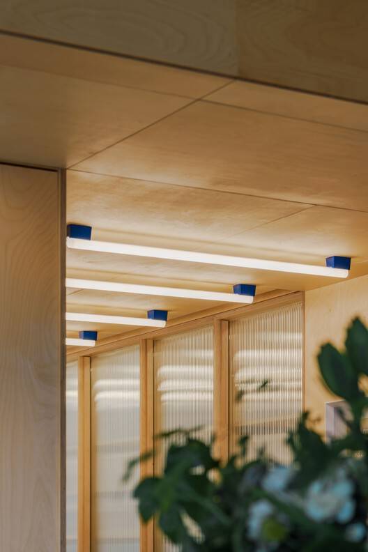 建筑师提供的文字描述Text description provided by the architects. KUBRICK is a global ceiling fan manufacturer whose design center resides in the heart of Taichung, Taiwan. Reflecting the brand's philosophy of honoring nature and fine craftsmanship, the office interior features abundant birch plywood, meticulously sectioned so that each functional element finds a quiet, appropriate place within the space.