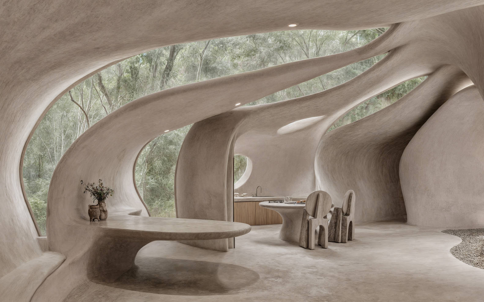 这项努力的核心是创造一个能唤起类似于母体子宫的安全感和幸福感的空间。这些空间旨在用于分娩和培养父母与孩子之间的联系,包括父亲的参与。总体概念是创造与人体协调的环境,让人想起子宫,不是作为一种回归,而是作为一种和解的手段。这个名为Centro TARSANA的适应性强的设施是身体和精神治疗的避难所,同时也为各种活动提供了机会。