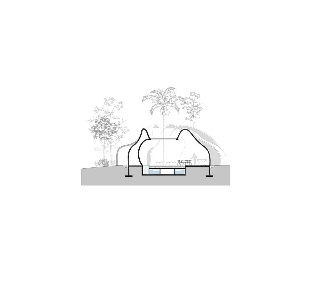 建筑师提供的文字描述Text description provided by the architects. Tarasana is situated within the Yelapa community, nestled amidst the lush jungle and alongside Mexico's western Sierra Madre mountains. As a holistic hub, Tarasana offers versatile amenities, including options for natural childbirth in water or on a bed. Additionally, it operates as a healing center that accommodates diverse activities. The project proposal aims to establish a comprehensive environment where babies, women, and men can reconnect with their inherent nature and the world around them. Inspired by Mathias Goeritz's Manifesto of Emotional Architecture, which advocates for elevating human spirituality through architectural design, the goal is to rescue architecture from its current state of purely material functionality.