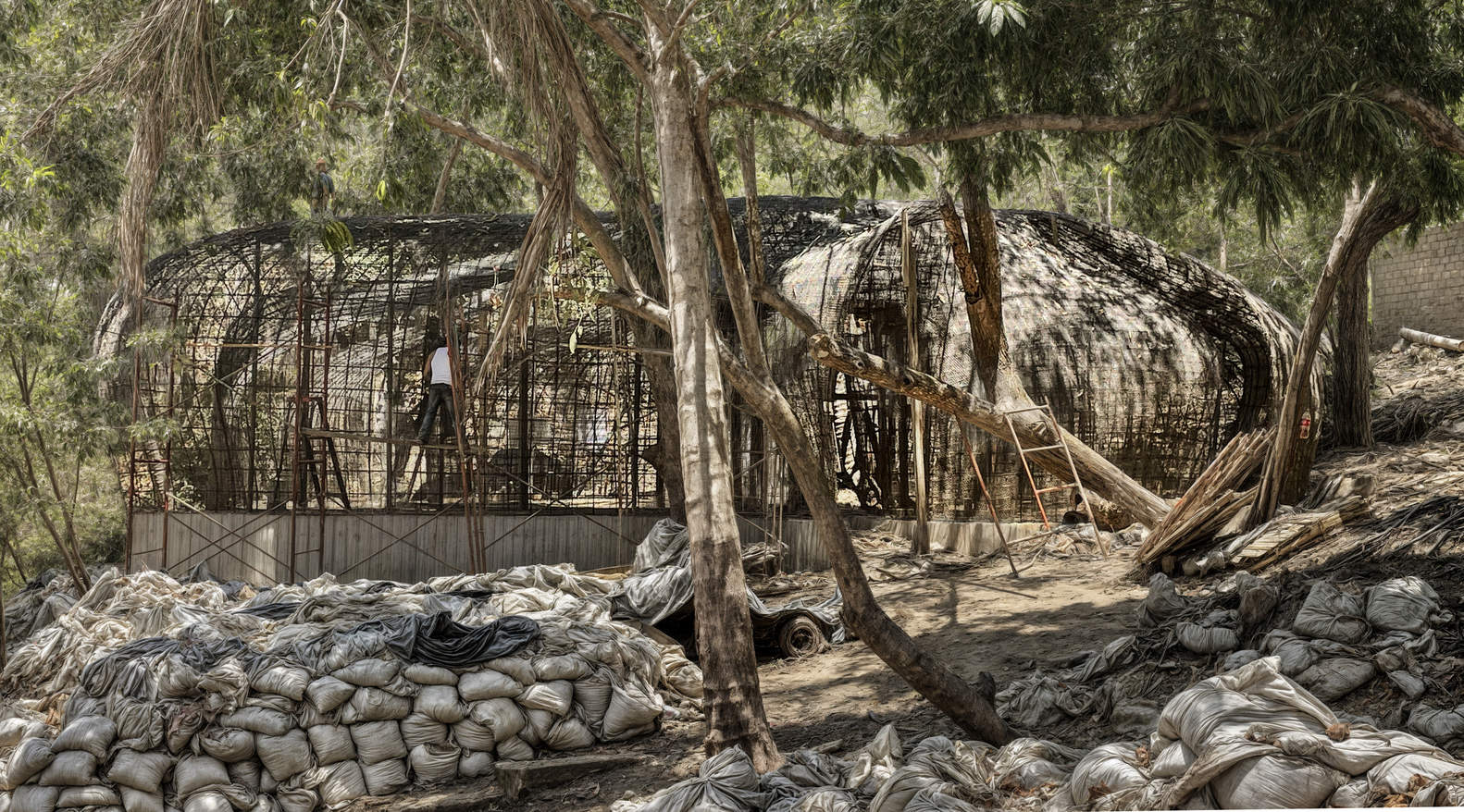 The function of cement, concrete, and steel in TARASANA embodies the convergence of seemingly irreconcilable opposites, akin to yin and yang, light and shadow, and feminine and masculine principles. Ferrocement, the precursor of reinforced concrete, offers high plasticity, enabling molding and sculpting. Its metallic skeleton directs vertical rods to a concentric ring, creating a monolithic form that aligns with the principles of the toroid. This ensures self-support, eliminating the need for independent vertical supports