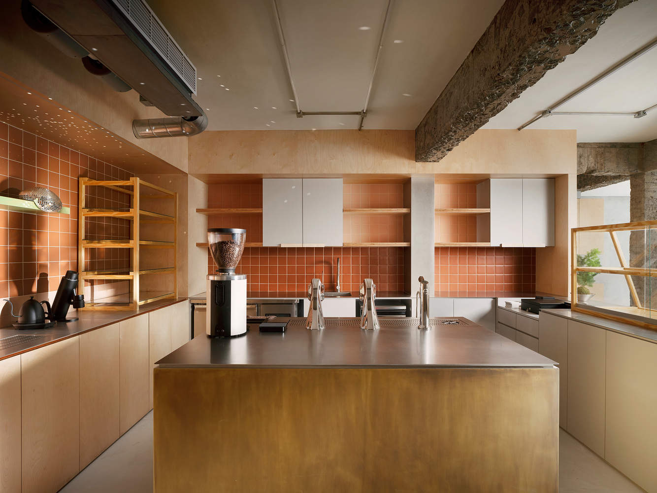 原始的梁和柱象征着旧的精髓,与体现新的新鲜木制品和木制家具形成鲜明对比。室内绿植通过大窗户与郁郁葱葱的景色相呼应,营造出和谐的对话。中央岛屿风格的酒吧,以俏皮的橙色瓷砖和与分层货架交织的矩形块为特色,增添了动态的视觉吸引力。在这里,客人可以一边享受美食,一边体验与当地无缝融合的日常生活的生动节奏。