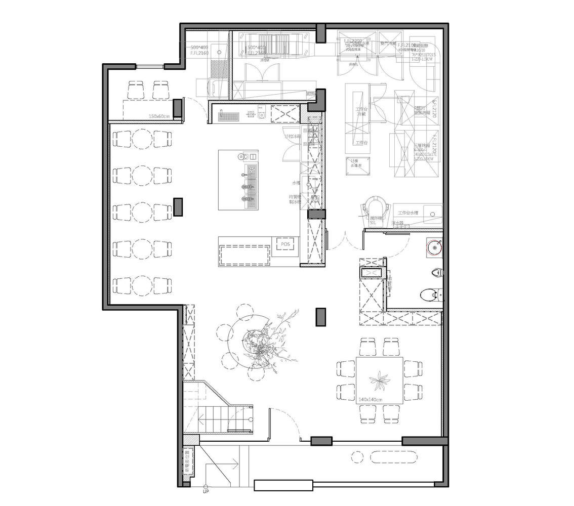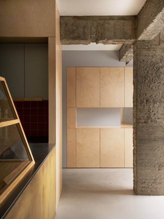 功能与体验的平衡:面包店的内部设计注重功能与体验的平衡。内墙采用明亮色调,缓解了低天花板带来的压抑感。空间布局根据原始平面图重新构想,服务区、休息区和产品区等功能区被精心分配,反映了社区的互动性。这种设计引导顾客探索、连接,并最终带着新鲜而有意义的体验离开。