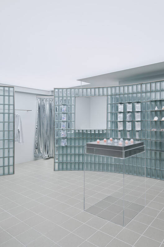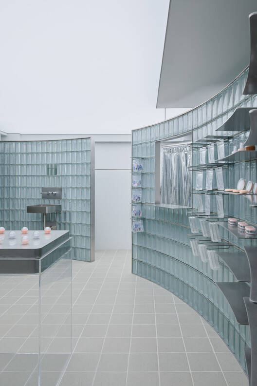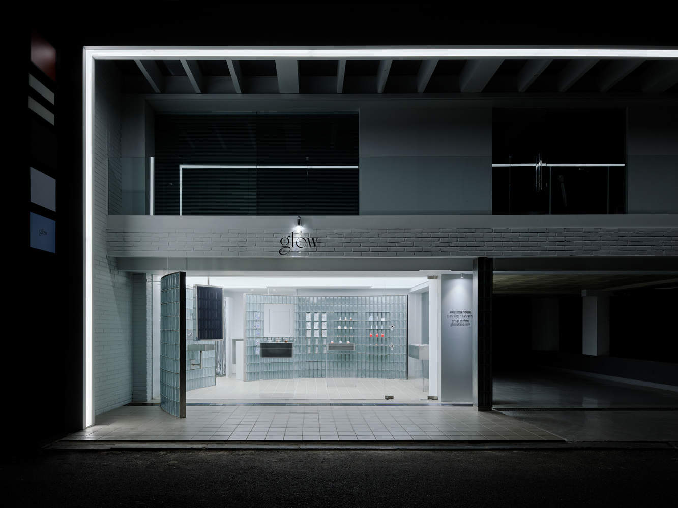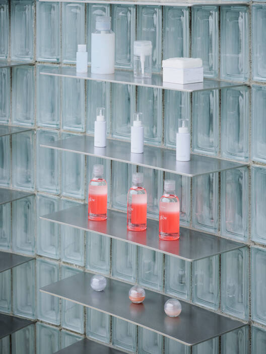 Text description provided by the architects. The GLOW showroom, created for a cosmetics firm that values transparency and brilliance, converts a small 36㎡ space in a narrow alley of Garosu-gil into an engaging marketing experience. Given the constraints of a small footprint and limited visibility, the design strives to represent GLOW's vivid brand and draw attention boldly.