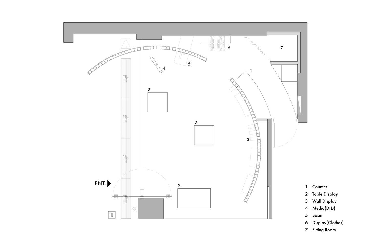 精髓所在:该项目的精髓在于对品牌特性的深刻理解和完美表达。设计师将GLOW品牌的透明度和光彩通过玻璃材质展现出来,并将品牌标志性的元素融入到细节设计中,例如定制的格栅和亚克力门把手。这些设计元素不仅提升了展厅的视觉效果,更重要的是,它们强化了品牌的身份,使整个空间成为品牌价值观的延伸。设计师在有限的物理空间内,创造了一个能够传达品牌精神、吸引顾客并提供独特体验的场所。