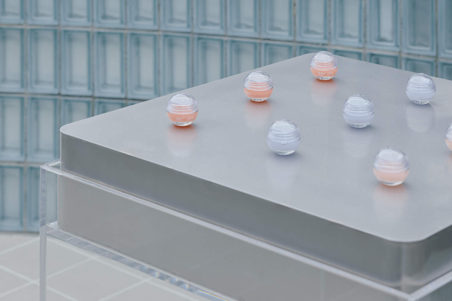 The area is further elevated by the attention to detail, which includes custom grating engraved with the brand's logoand acrylic door knobs inspired by the GLOW symbol. These design features reinforce the brand's identity while adding a sense of refinement to the showroom. Through Indiesalon's flexible and innovative design approach, the space transcends a conventional retail function, offering a visually striking and functional environment that fully embodies the brand's values and modern sophistication.